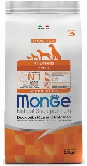 Купить Monge Dog Speciality корм д/взр. собак всех пород утка с рисом и картофелем 2,5кг