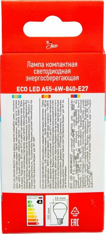 Ниже Вы можете прочитать отзывы на Лампа светодиодная E27 A55 6W (60W) 220V холодный ECO ЭРА ЭРА LED-SMD-A55-6W-840-E27 ECO, ознакомится с подробными характеристиками, посмотреть интересные обзоры и фотографии на Лампа светодиодная E27 A55 6W (60W) 220V холодный ECO ЭРА ЭРА LED-SMD-A55-6W-840-E27 ECO.