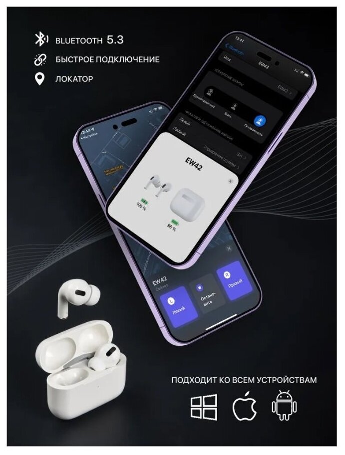 Подключаются моментально, кейс пришел с зарядом 100%, на каждом наушнике стоит защита от активации и перезаряда на контактах. Снимаем пленку, к айфону подключаются моментально. Айфон их видит как аирподс про, сразу в настройках появится менюшка с управлением наушниками, настройками и другими штуки. Звук, слух у меня конечно не музыканта, но и медведь на ухо не наступал, так вот звук хороший, чистые басы, при большой громкости мне лично дискомфортно от уровня вибраций, но звук даже на максималках не хрипит не пердит. От яблочных 1,2 поколения на голову выше, с прошками на ровне. Кейс, копейка в копейку по размерам похож на прошный, пластик приятный. Если не всматриваться в надписи легко спутать с прошкой. Есть комплект резинок на средние и маленькие уши, резинки понравились больше чем на порошках, они тут плотнее и приятнее. Зарядка наушника, с 9:00 до 15:00 нон-стоп режим работает без снимания. Потом пищит что подсел. В комплекте идет провод usb-lightning , яблоко телефон заряжает без проблем. |