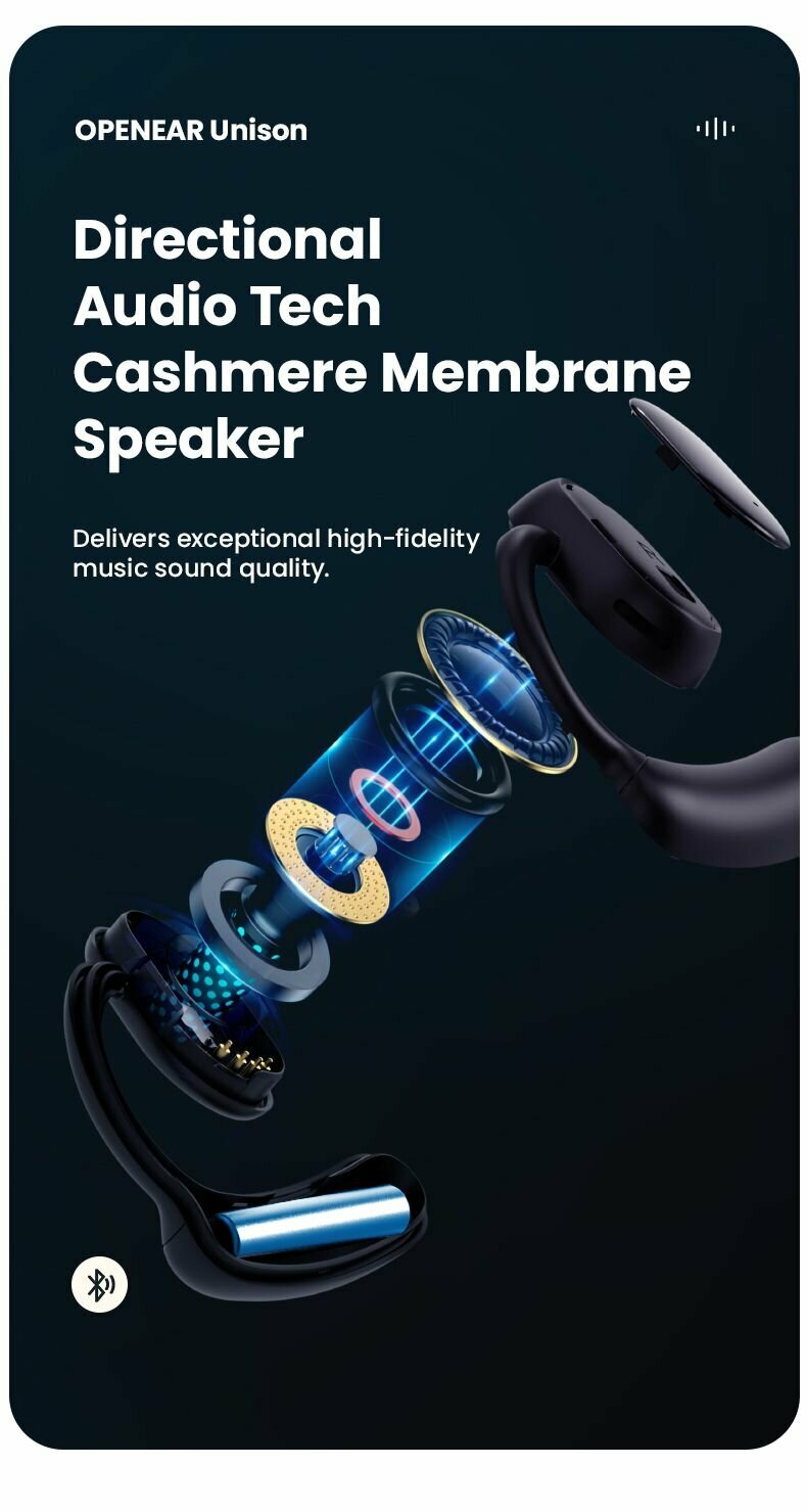 Наушники TWS с открытым ушным каналом и сенсорным управлением Zdk Openear Unison Черные интересное: