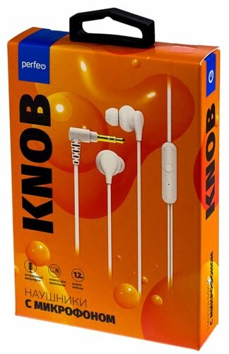 Купить Perfeo наушники внутриканальные c микрофоном KNOB белые