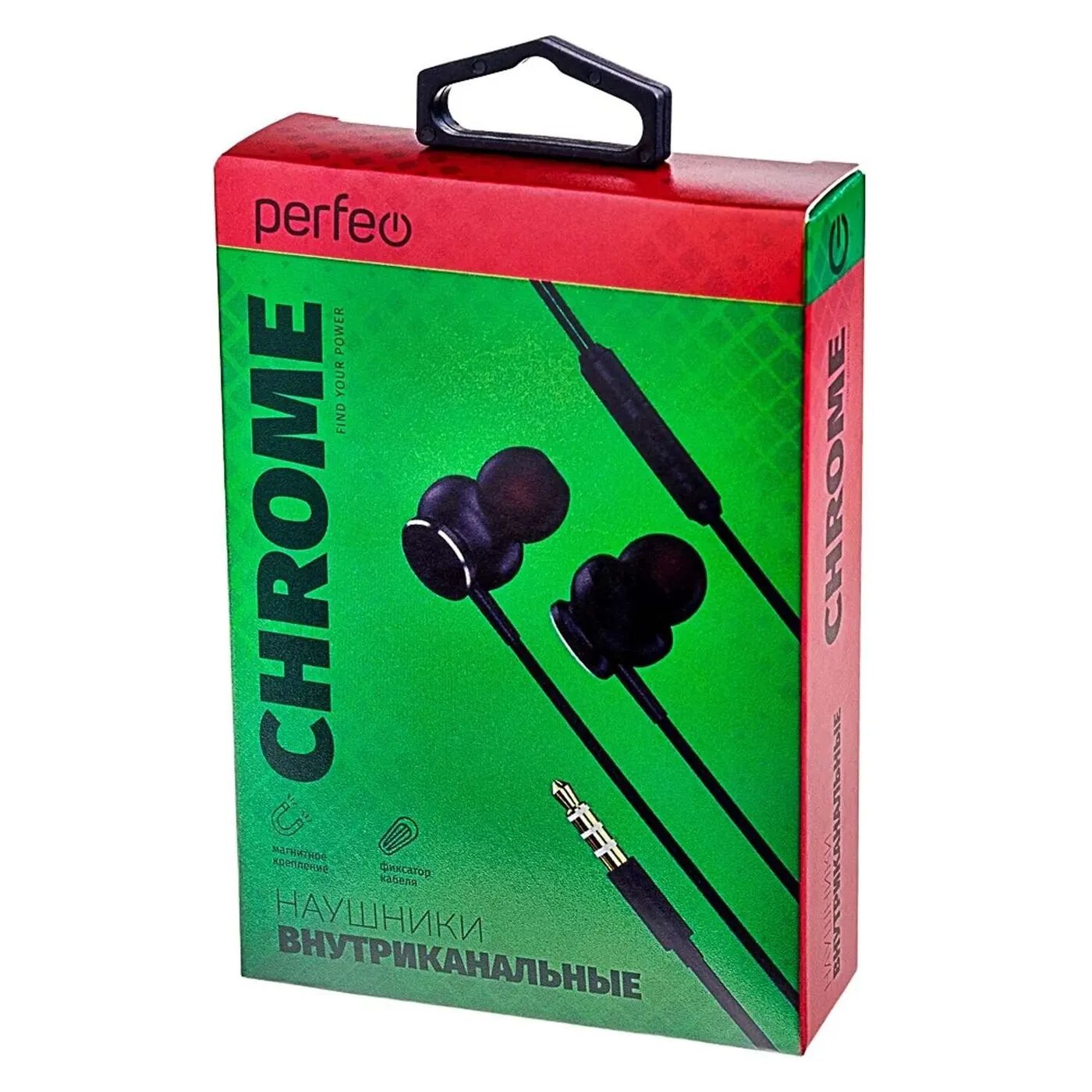 Внутриканальные наушники Perfeo Chrome, PF_C3214, проводные, c микрофоном, мини-джек 3,5 мм, черные