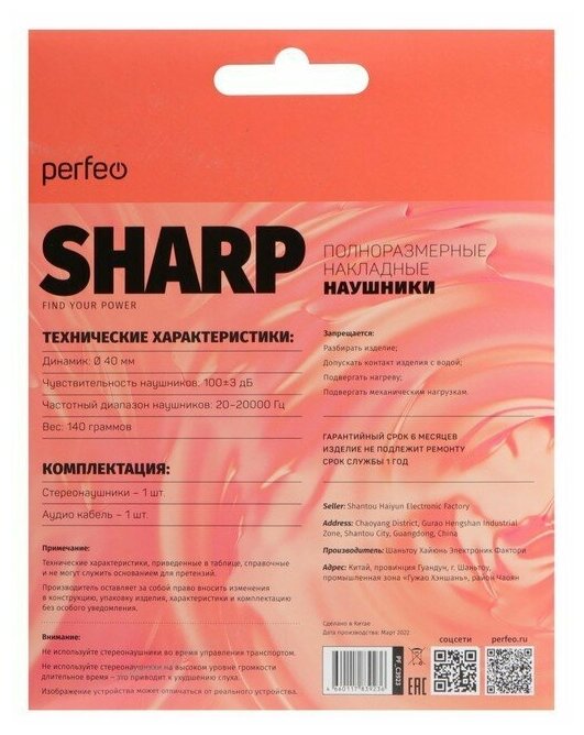 Наушники Perfeo Sharp Pf_c3923, накладные, складные, 40мм, 100дБ, 32Ом, 3.5мм, 1.2м, черные Perfeo 9 интересное: