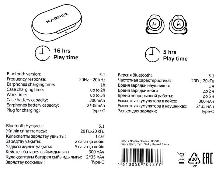 TWS наушники (HARPER HB-519 BLACK)