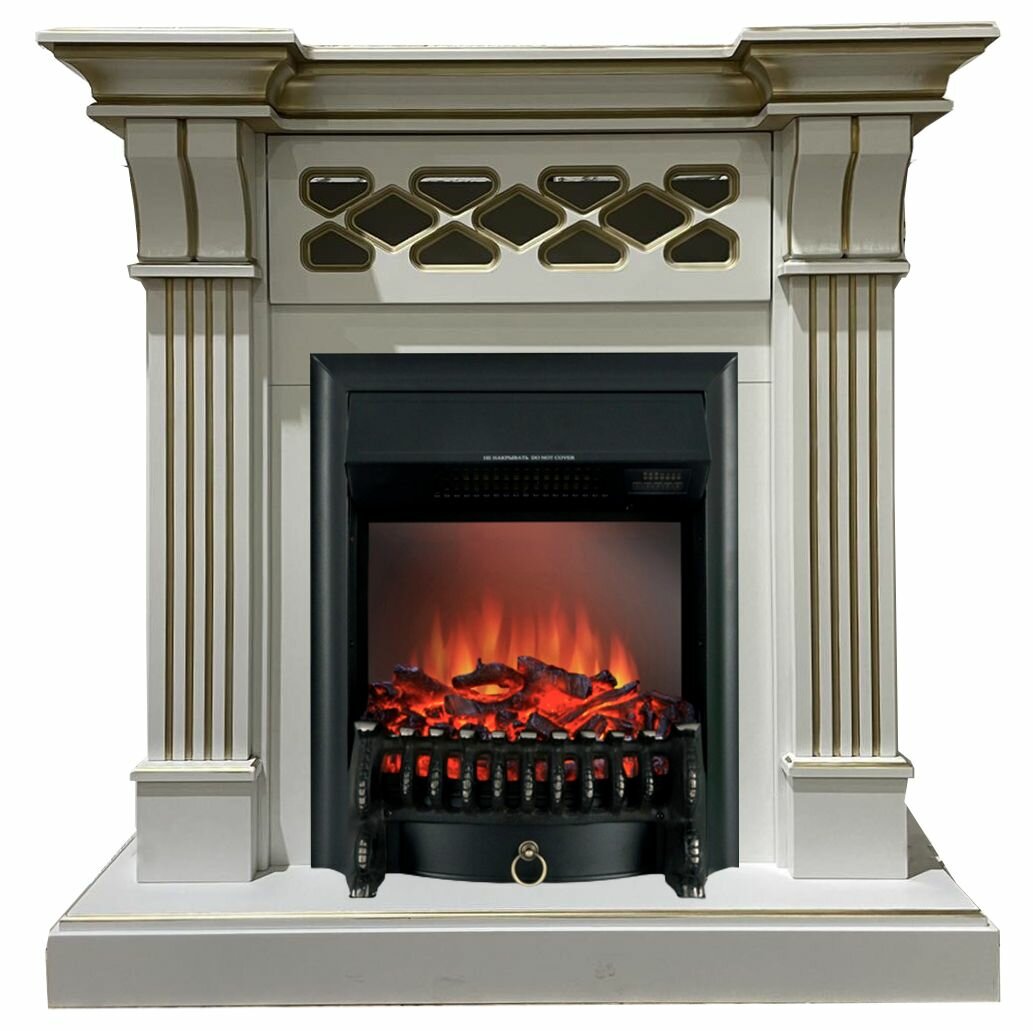 Электрокамин FlameKamin Асгард mini WT патина золото с очагом Fobos (электрический камин)