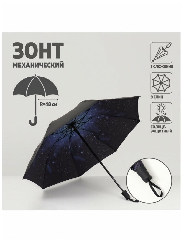 Зонт жен мех R48 3сл 8спиц П/Э Звездное неб солнцезащит руч прям пакет 7663034 интересное: