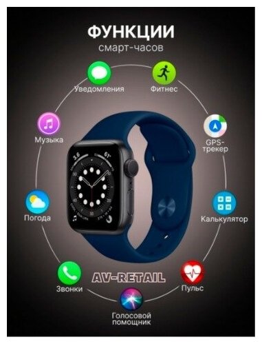 AV-Retail / Умные часы Smart Watch 7 серии 45мм синие / Два ремешка в комплекте интересное: