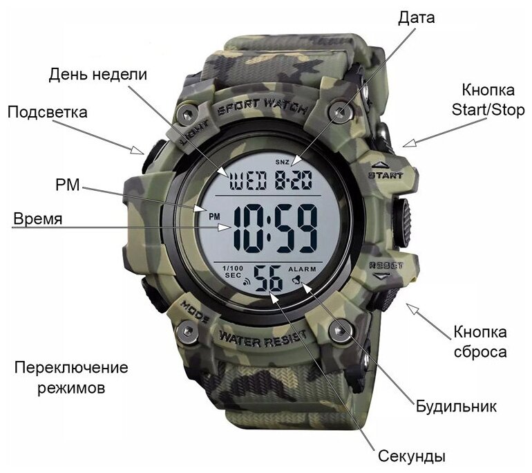 Часы мужские SKMEI 1552 - Зеленый камуфляж интересное: