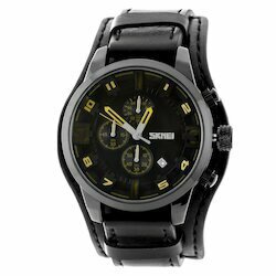 Часы наручные мужские классические SKMEI с секундомером, черные/желтые