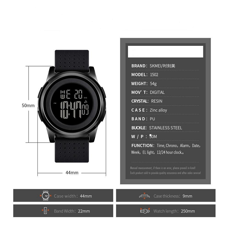 Часы SKMEI 1502, водонепроницаемые, черные.
