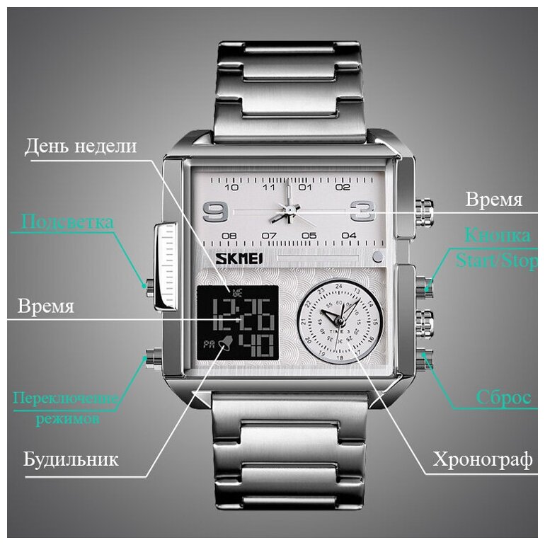 Часы наручные SKMEI 1584 Steel Band, классические, водонепроницаемые, будильник Серебристые интересное: