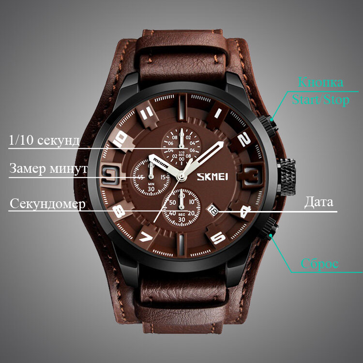 Часы Skmei с секундомером, классические коричневые