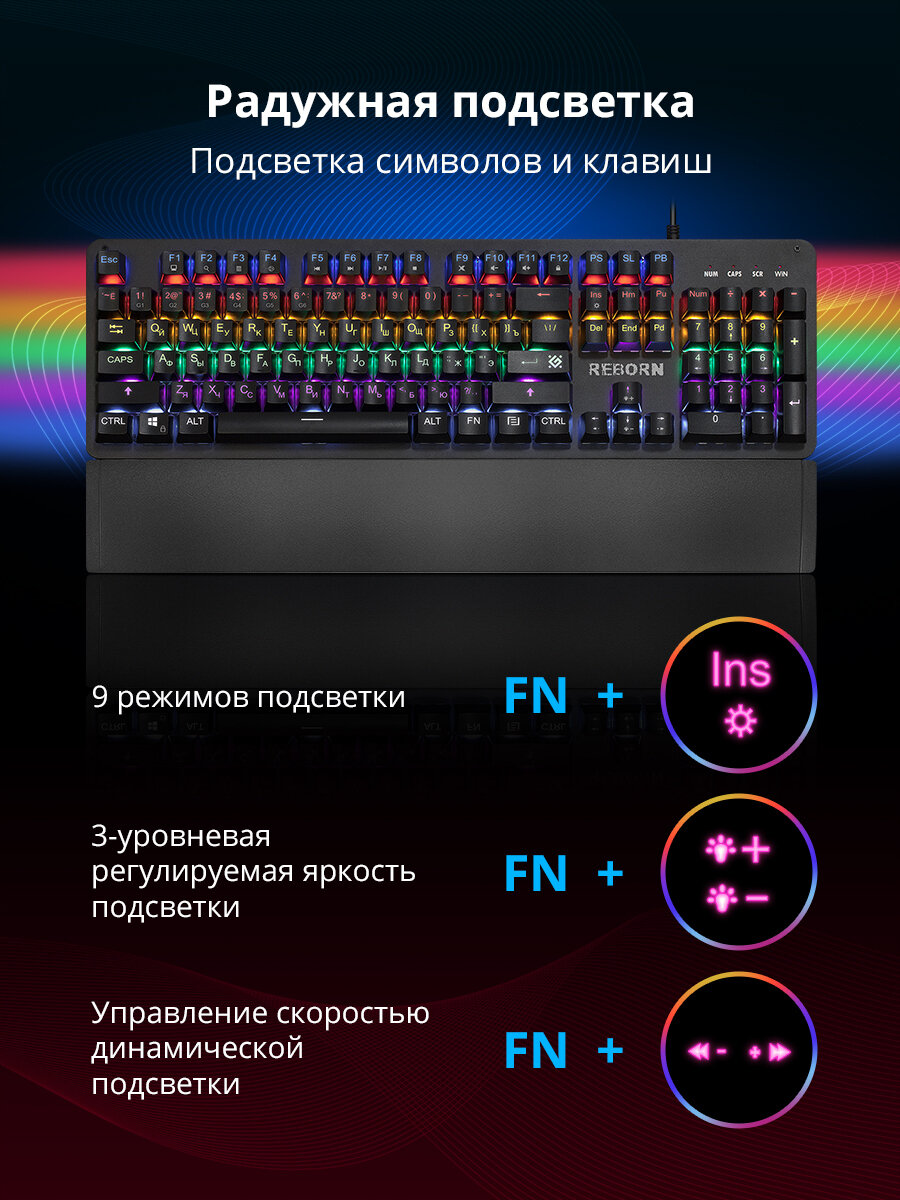 Defender Клавиатура Reborn Gk-165dl RU [45165] Механическая, радужная, anti-ghost .