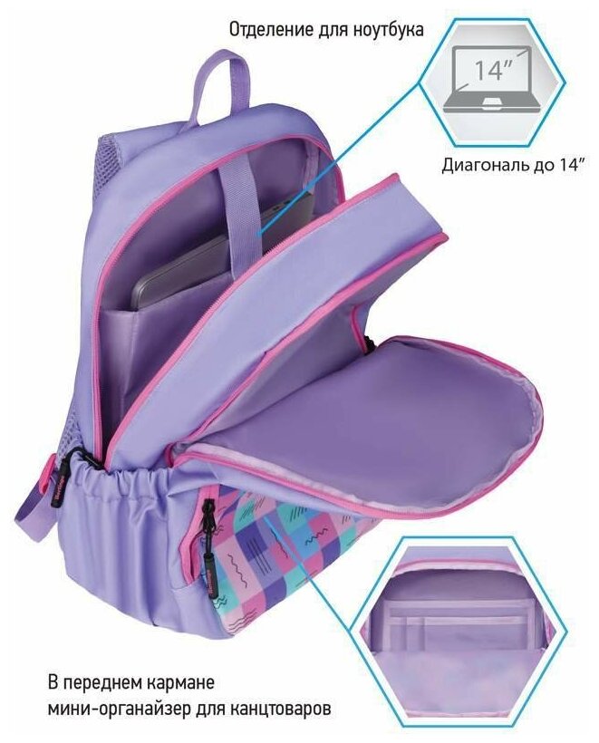 Купить Рюкзак Berlingo Light «Squares» 39.5×28×16см, 2 отделения, 3 кармана, уплотненная спинка