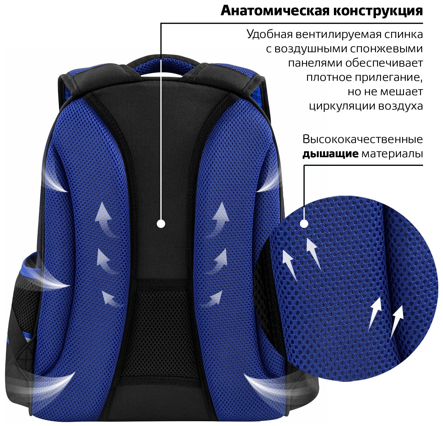 | Особенности | без наполнения / вентилируемая спинка / вентилируемые лямки / водоотталкивающая пропитка / грудная стяжка / ножки / разделитель в главном отделении / регулируемые лямки / ручка для переноски / светоотражающие элементы / эргономичная спинка |