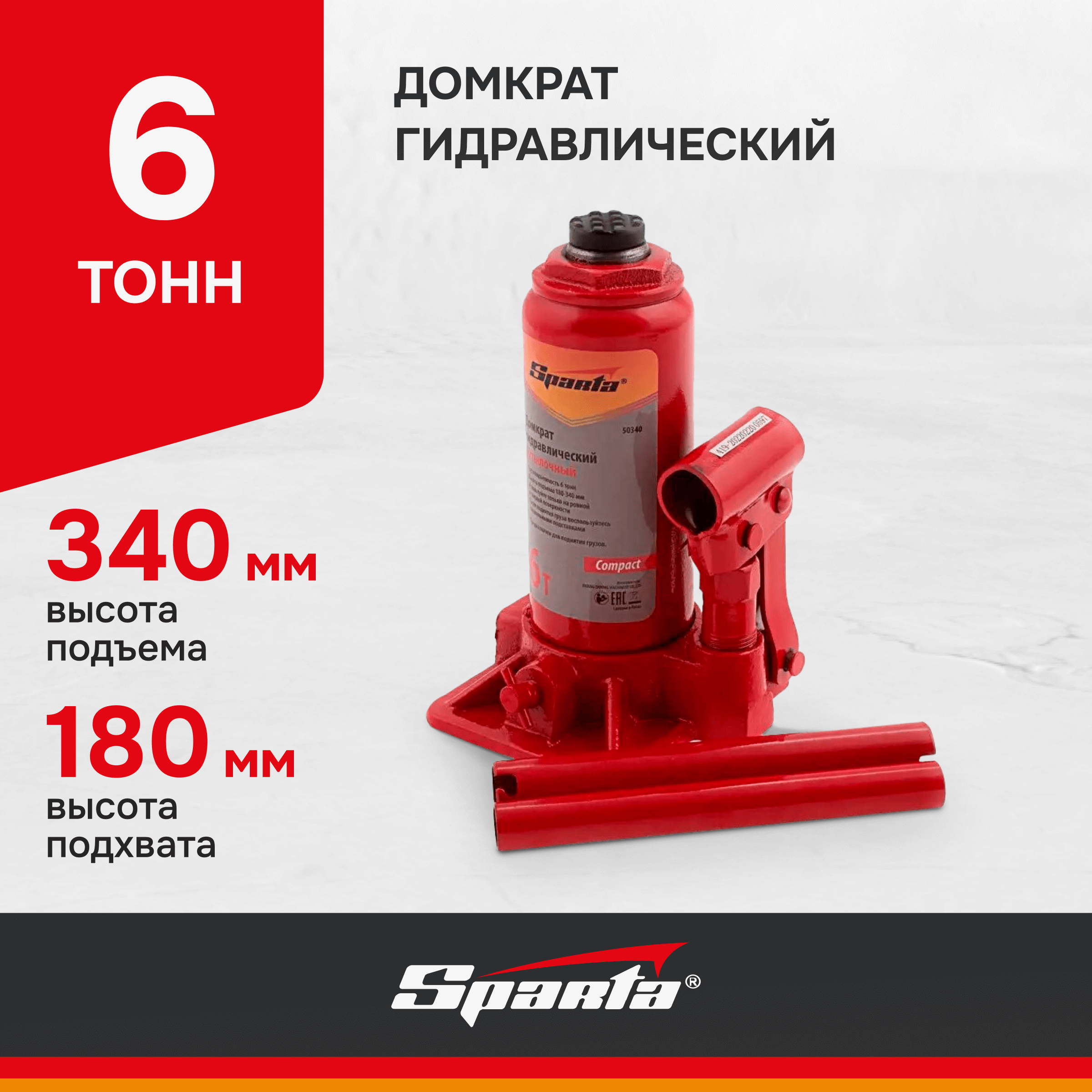 Домкрат гидравлический бутылочный, 6 т, h подъема 180–340 мм, Compact, SPARTA 50340
