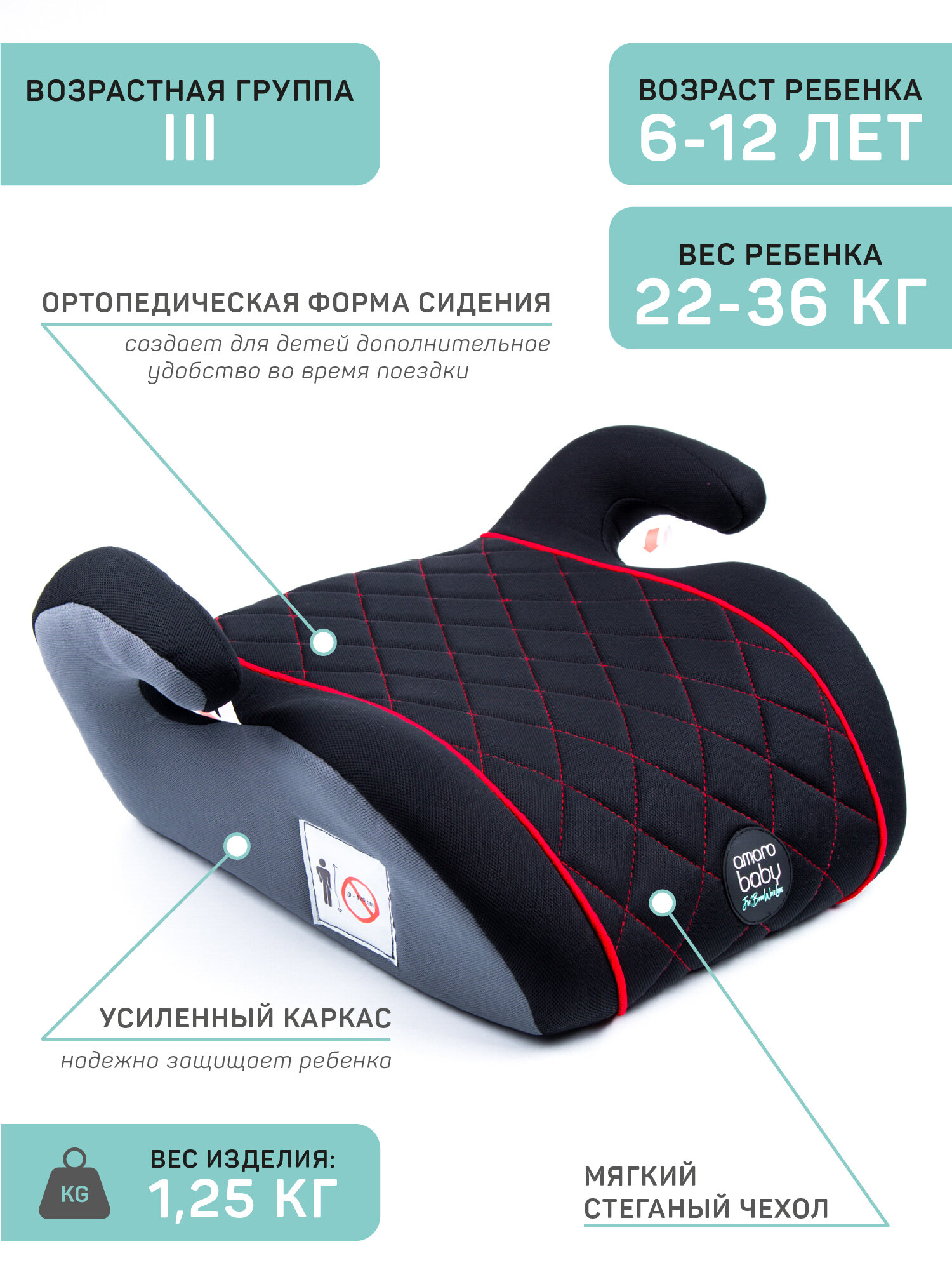 Автокресло детское (бустер) AMAROBABY Easy way, группа III, (чёрный/красный) интересное: