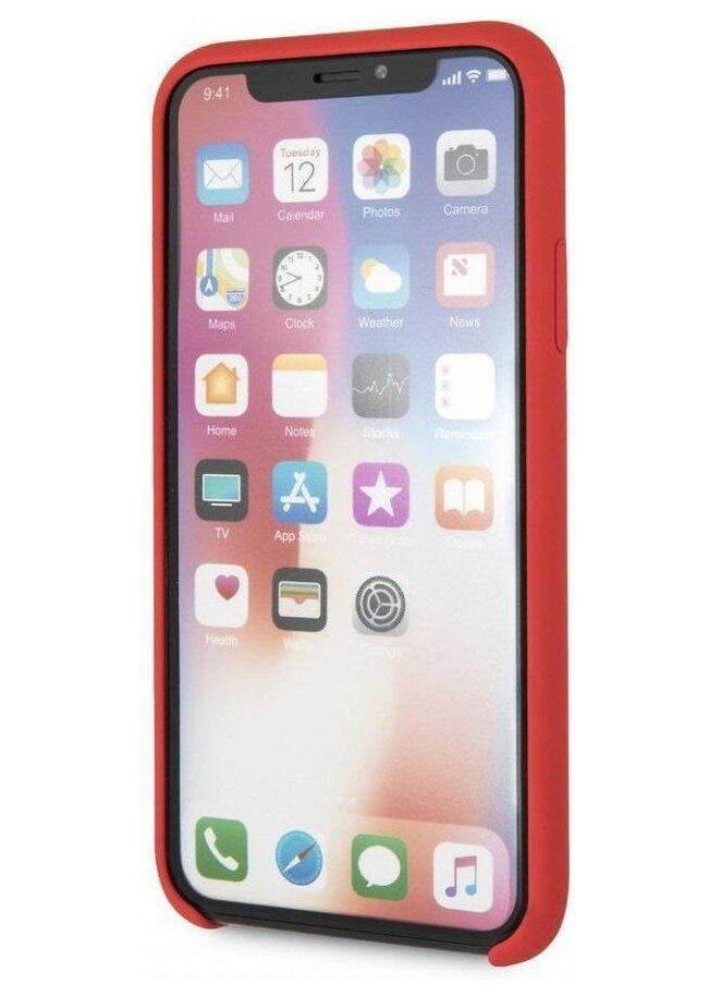 Купить Чехол Ferrari для iPhone XS Max Silicone rubber Silver logo Hard Red