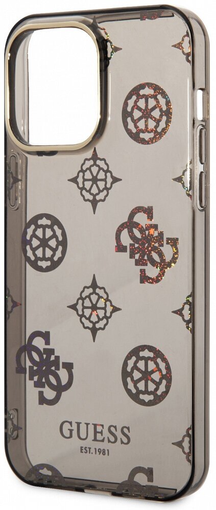 Guess для iPhone 14 Pro Max чехол PC/TPU Peony glitter Electroplated camera Hard Black