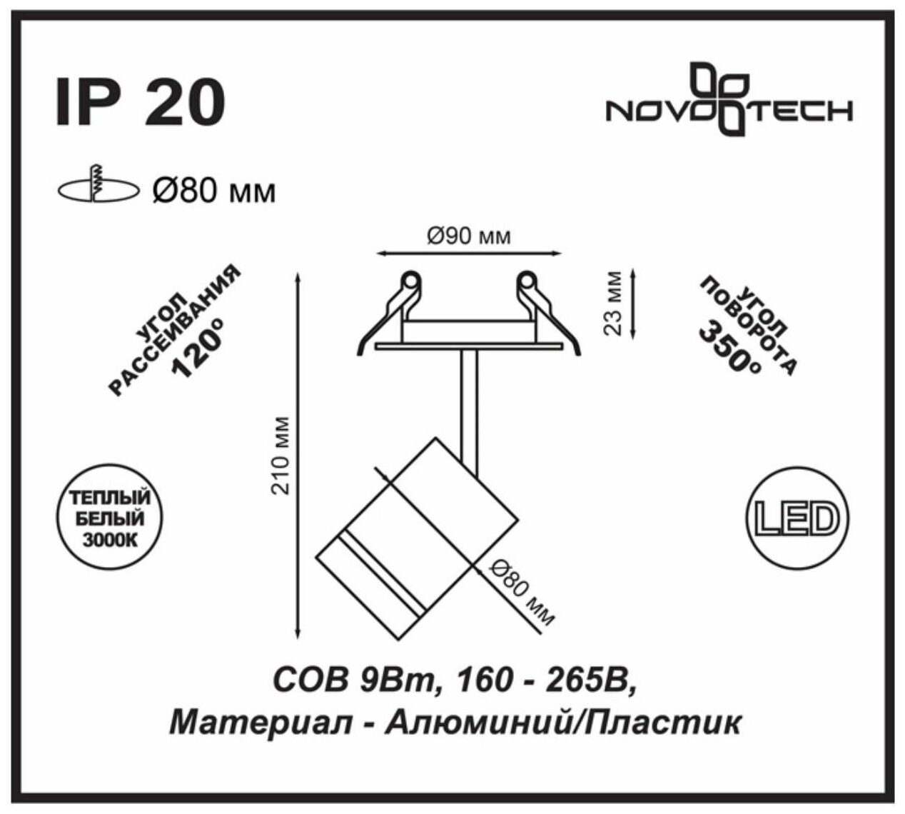 NOVOTECH 357689 SPOT NT18 214 алюминий Встраиваемый светильник IP20 LED 3000K 9W 160-265V ARUM