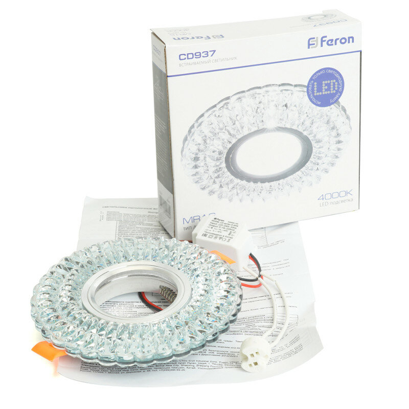 Светильник встраиваемый с белой LED подсветкой Feron CD937 потолочный MR16 G5.3 прозрачный интересное: