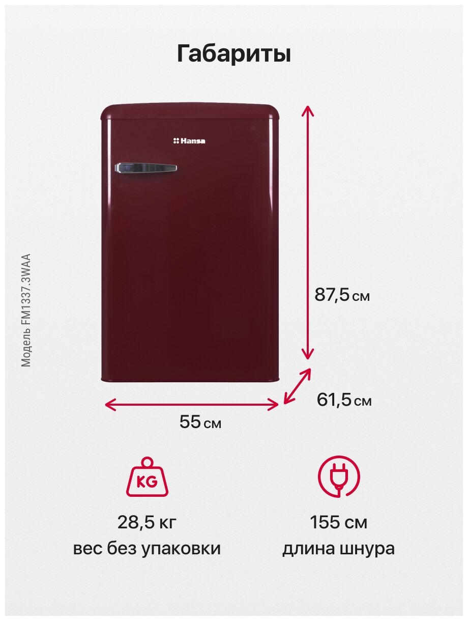 Холодильник Hansa FM1337.3WAA бордовый (однокамерный)