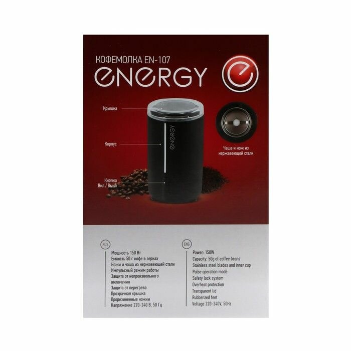 Кофемолка Электрическая 150ВТ 50ГР НОЖ Нерж СТ ИМП Режим БЕЛ 152473 Energy EN-107 БЕЛ 152473 .