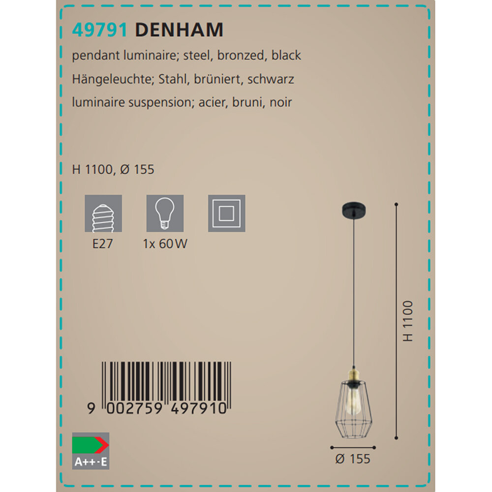 Светильник подвесной Eglo DENHAM, 49791, 150W, E27