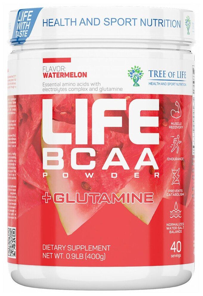 LIFE BCAA Powder 400 gr, 40 порции(й), арбуз интересное: