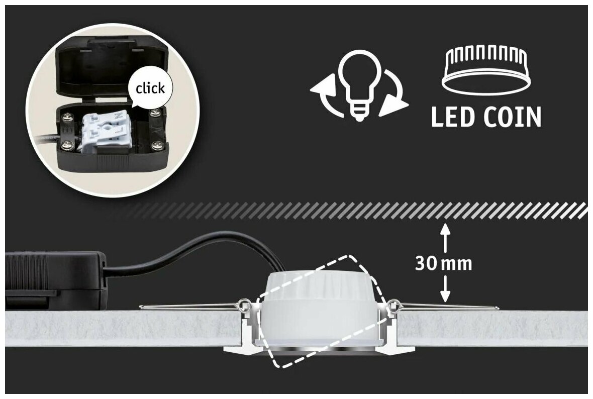 Светильник встраиваемый Paulmann Nova 6Вт 470Лм 2700К IP23 LED Coin 230В Хром Набор 3 штуки 3-х ступенчатое диммирование 93488 интересное: