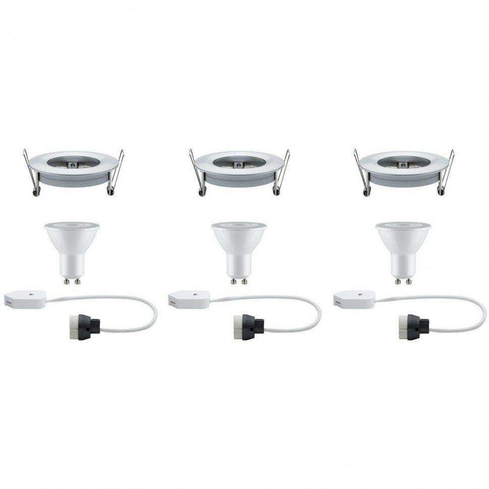 Купить Светильник встраиваемый Paulmann Nova D78мм 7Вт 460Лм 2700К GU10 LED IP44 230В Алюминий точеный Димм Набор 3 шт. 93598