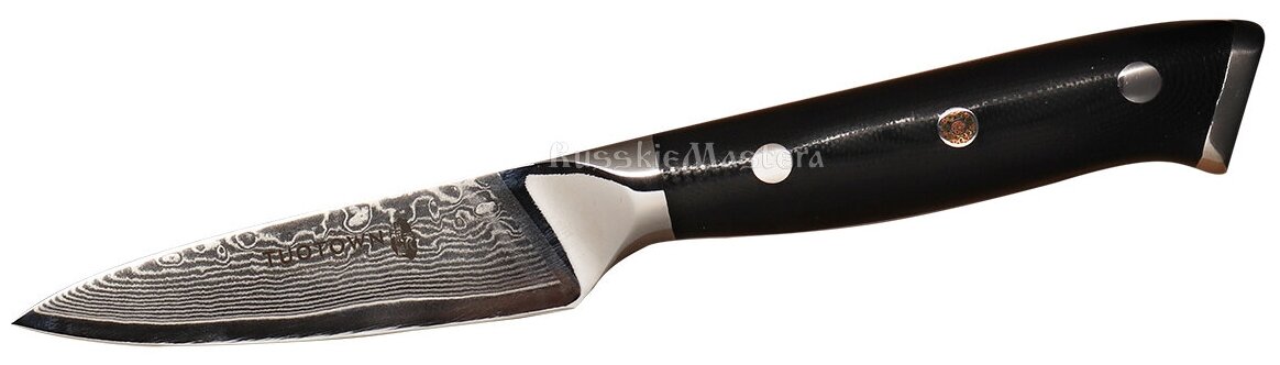 Коренчатый кухонный нож (Petty), TuoTown P90 TX-D1, рукоять G10, клинок 9см (VG10-Damascus). интересное: