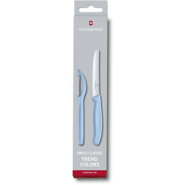 Набор из 2-х кухонных ножей VICTORINOX Swiss Classic Trend Colors: нож с лезвием 11 см, овощечистка, в картонной коробке, голубой 6.7116.21L22