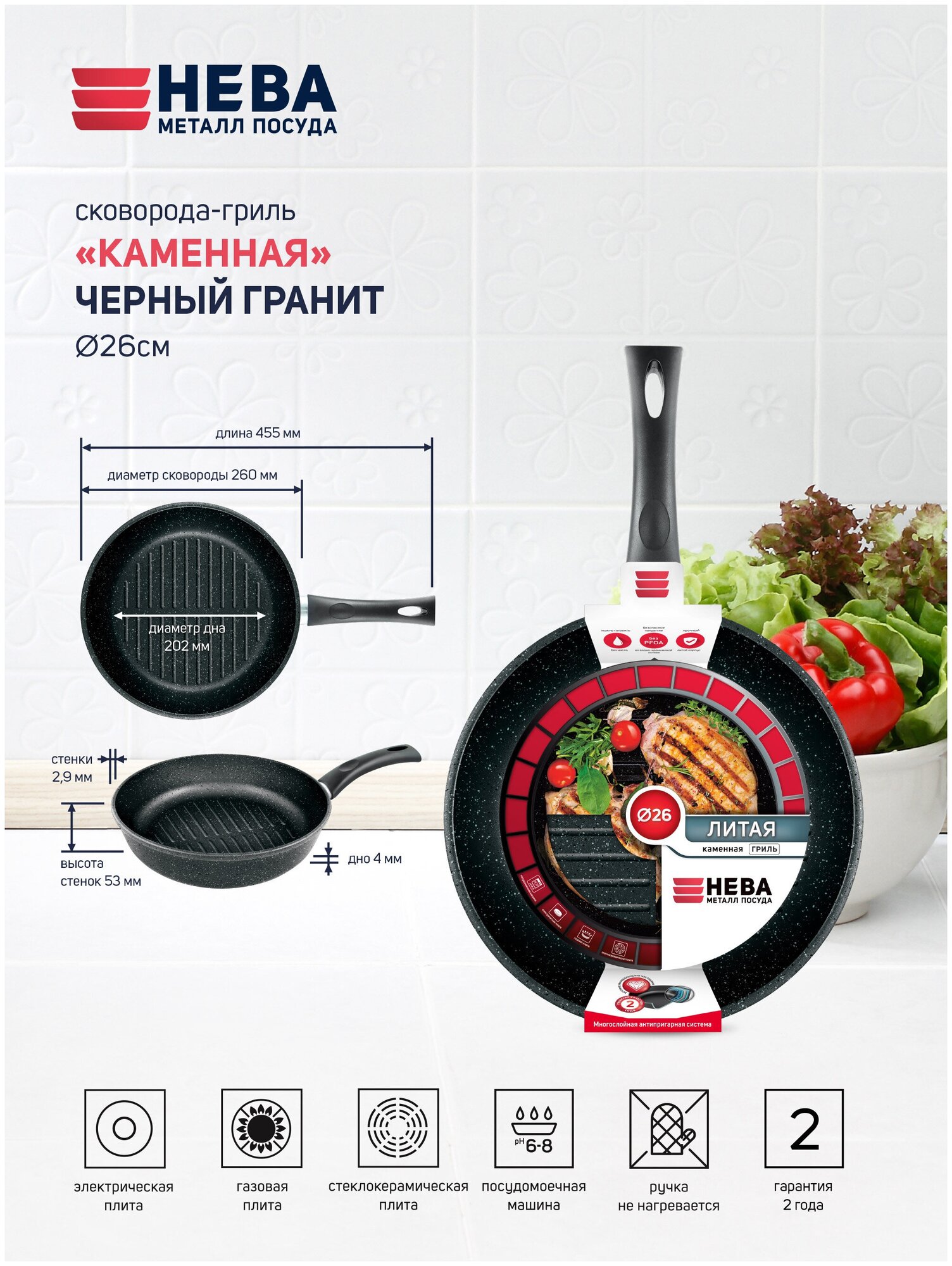 Сковорода-гриль нева металл посуда НМП "Каменная" Чёрный гранит 26 см (18226) интересное: