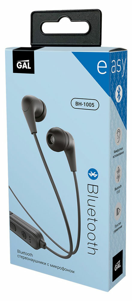Bluetooth наушники вкладыши с микрофоном GAL BH-1005 беспроводная мобильная гарнитура, черные