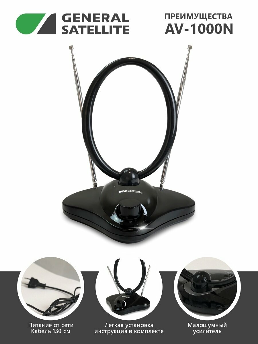 Антенная комнатная активная General Satellite UVR-AV1000N