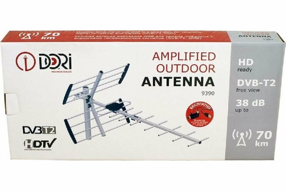 Антенна Dori 9390, уличная, активная, 38 дБ, DVB-T, DVB-T2, цифровая, с училителем