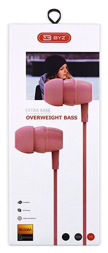 Наушники проводные BYZ SE508A вакуумные с микрофоном, 1,2 метра, розовый интересное: