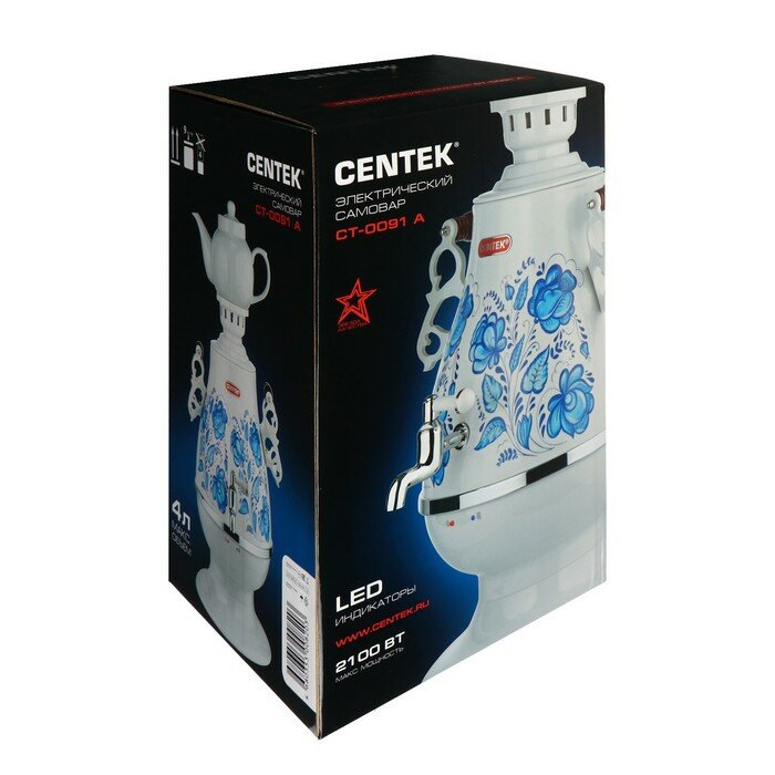 Самовар электрический CENTEK СТ-0091A 4 л, 2100 Вт, белый/голубой