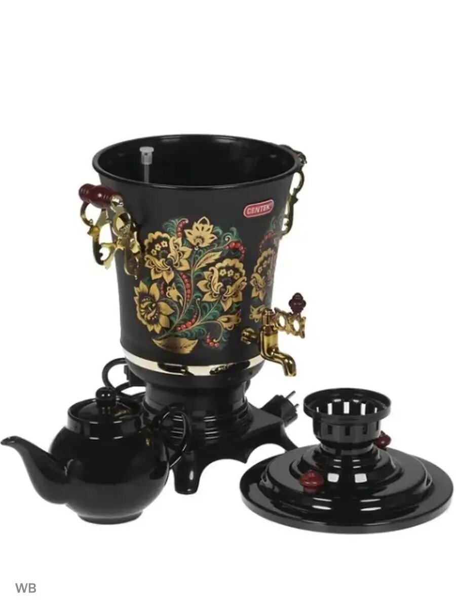 Самовар Электрический 4.0Л 2300ВТ Метал Корп/керам ЗАВ 1Л Черн Ручка ЗОЛ Хохлома Centek