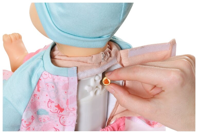 | Комплектация | кукла с одеждой, горшок, слюнявчик, бутылочка, тарелка с ложечкой, коробка для хранения с крышкой, пластиковые пластинки, лист с наклейками |