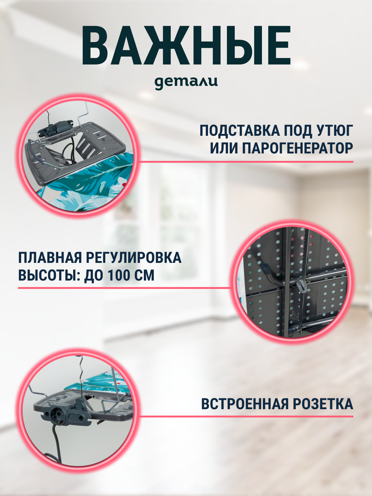 Доска гладильная Ника Грант 1220х42см. металл. выс. до 1м. НГ/2 с тропическими листь 122х42см. мет. выс. до 1м.