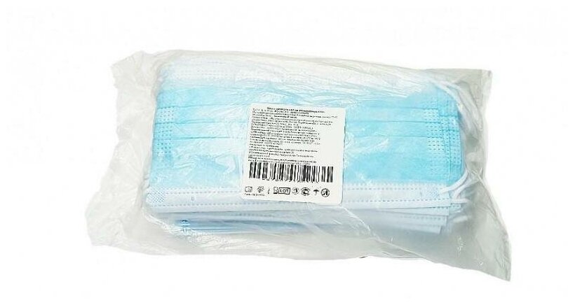 Маска мед. защитная одноразовая 3-х слойная голубая (50 шт/уп) интересное: