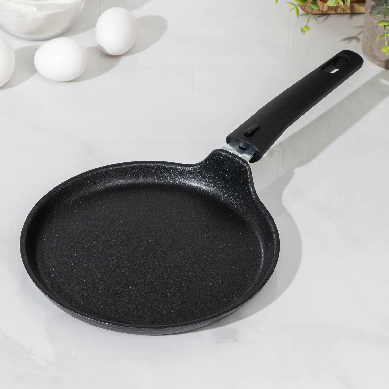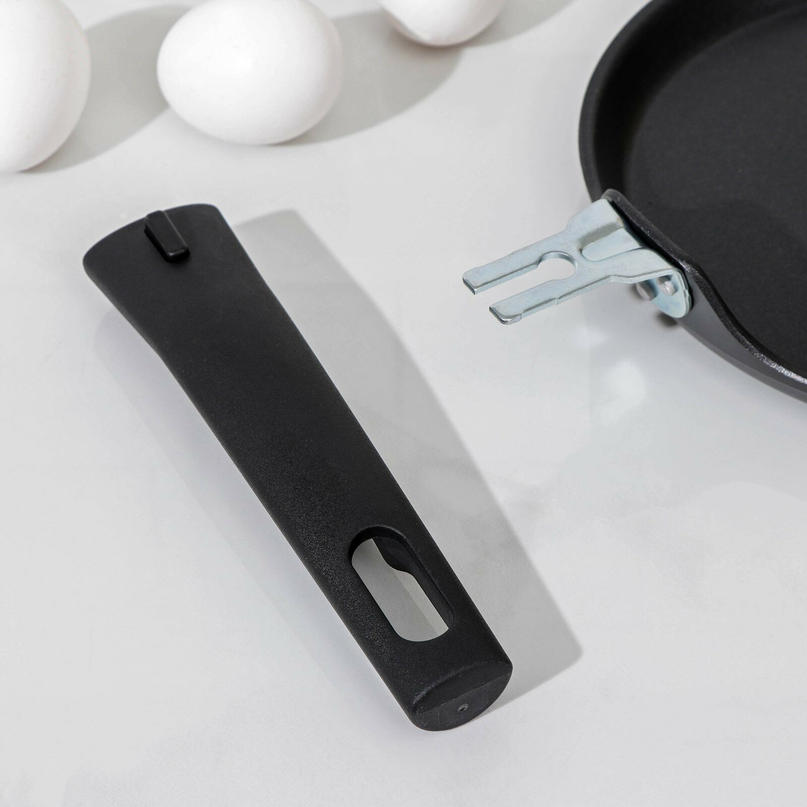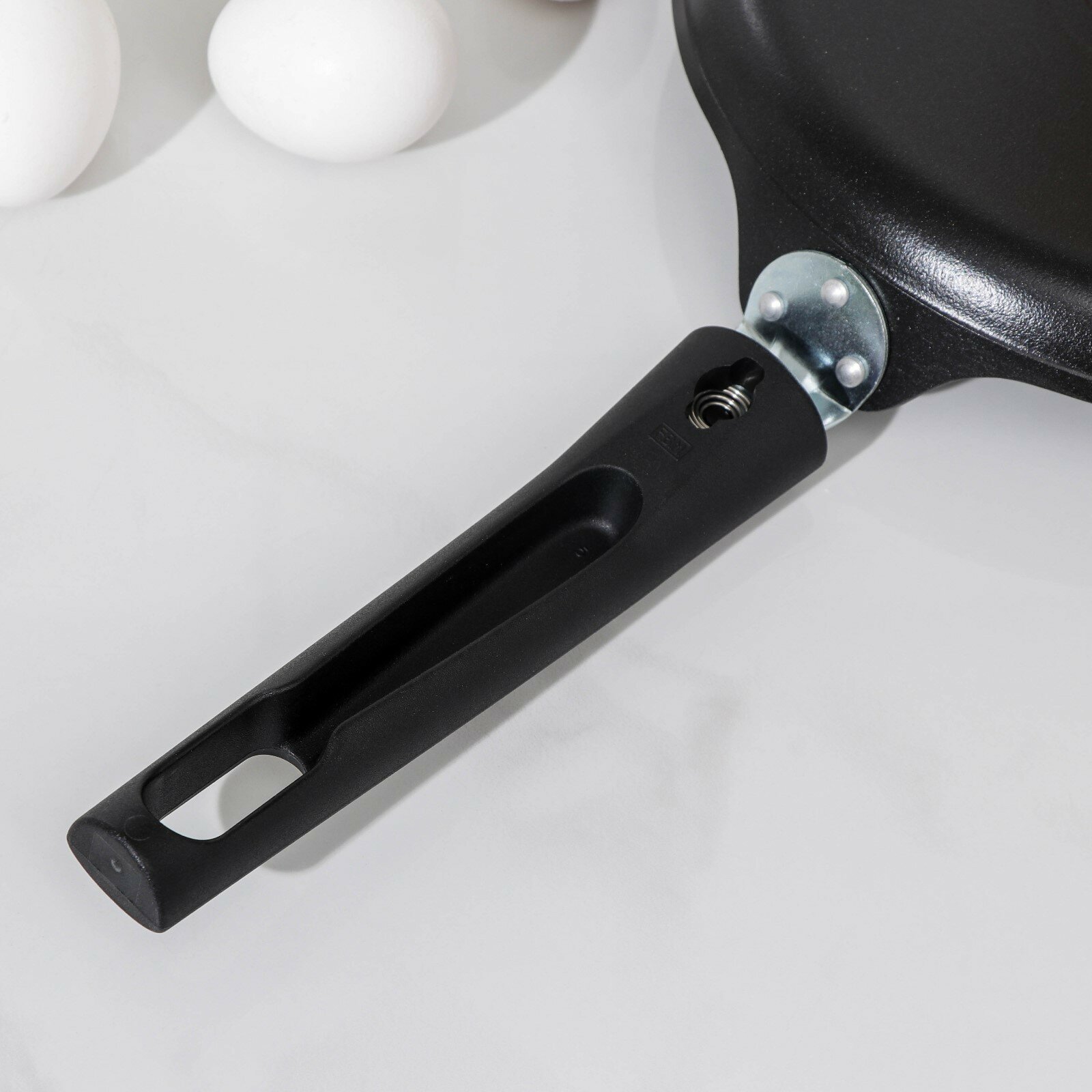 Сковорода блинная, d20 см, съёмная ручка, антипригарное покрытие, цвет чёрный