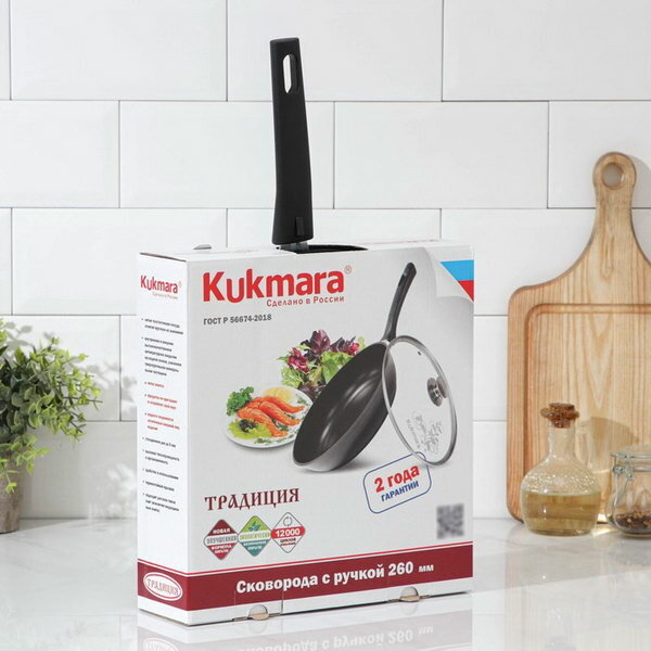 Сковорода Kukmara "Традиция", 26*6 см, стеклянная крышка