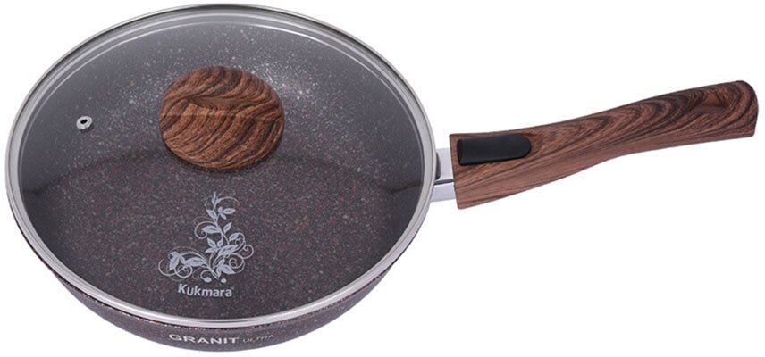 KUKMARA Сковорода Granit ultra, d26 см, стеклянная крышка, съёмная ручка, антипригарное покрытие