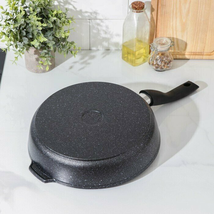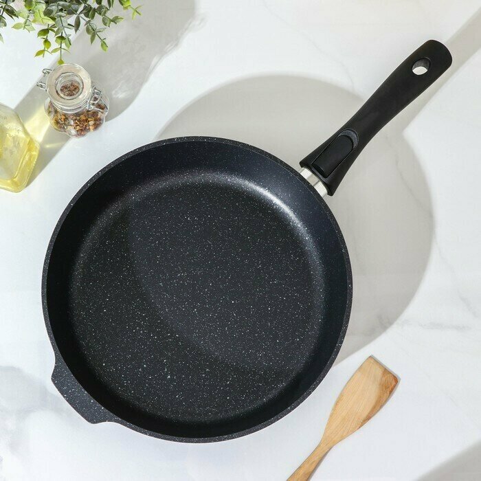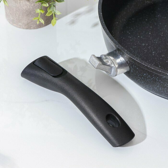 Сковорода, d=28 см, съёмная ручка, антипригарное покрытие, тёмный мрамор