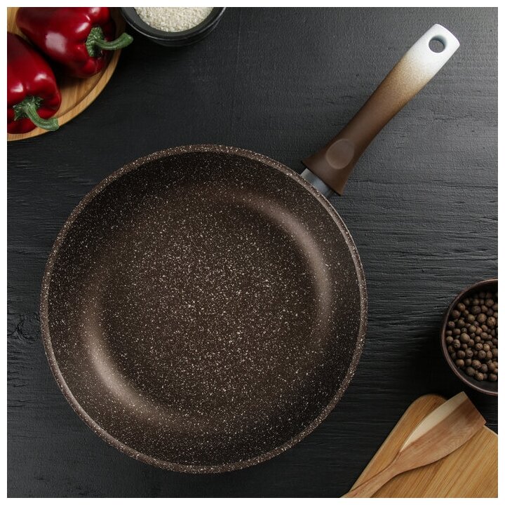Сковорода, d 28 см, с ручкой, антипригарное покрытие, кофейный мрамор интересное: