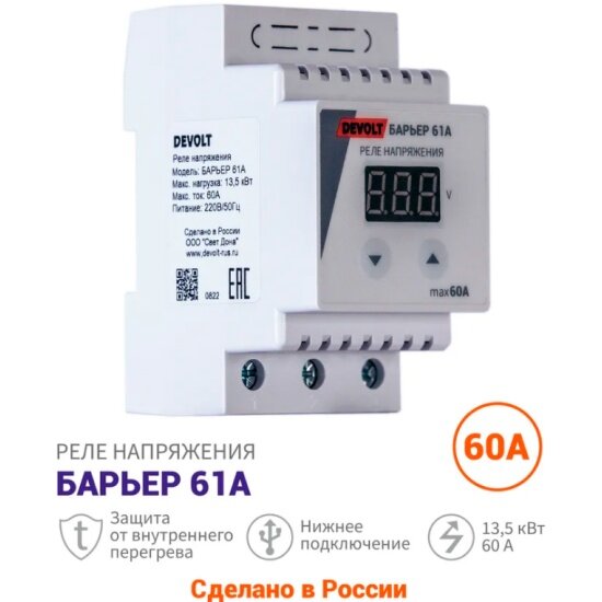 Реле напряжения Devolt БАРЬЕР-61А, 60А