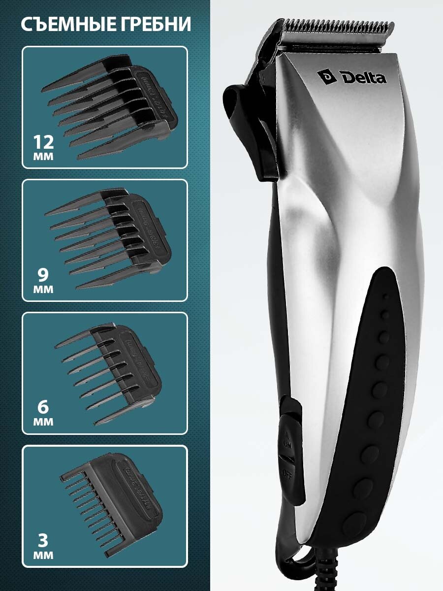 Машинка для стрижки DELTA DL-4052 серебристый,10Вт, 4 съемных гребня